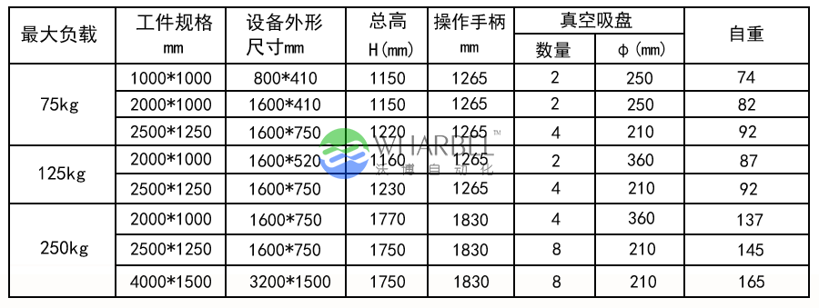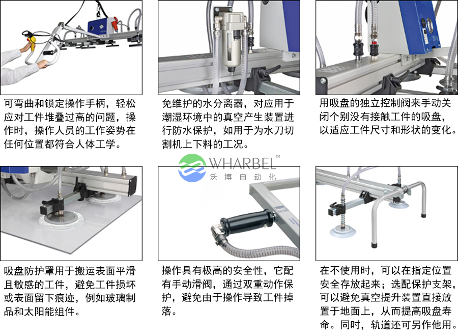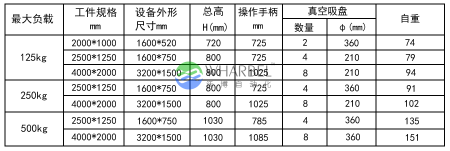 主机特点:◆ 高效、无损搬运重型工件;◆ 人体工学设计,保护操作者身体健康;◆ 带有真空蓄能器和声响警报装置,确保了使用工程中卓越的安全性和可靠性;◆ 由钢、铝及高强度塑料制成,坚固耐磨,寿命极长;◆ 最高载荷750KG。技术参数:水平搬运型技术参数90°翻转型技术参数180°翻转型技术参数特点介绍: 广泛应用于汽车及零部件